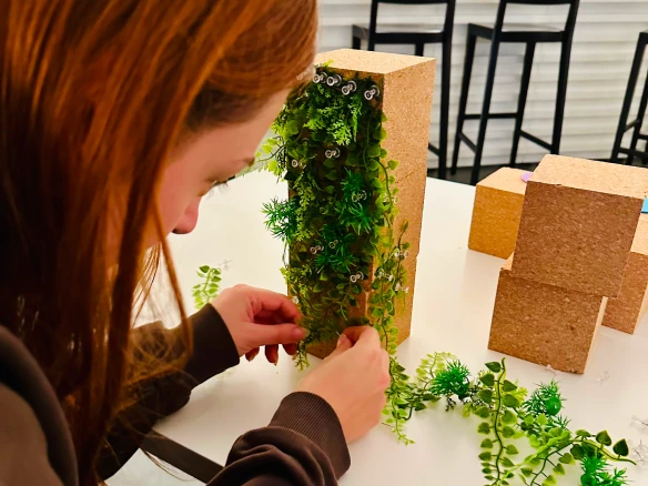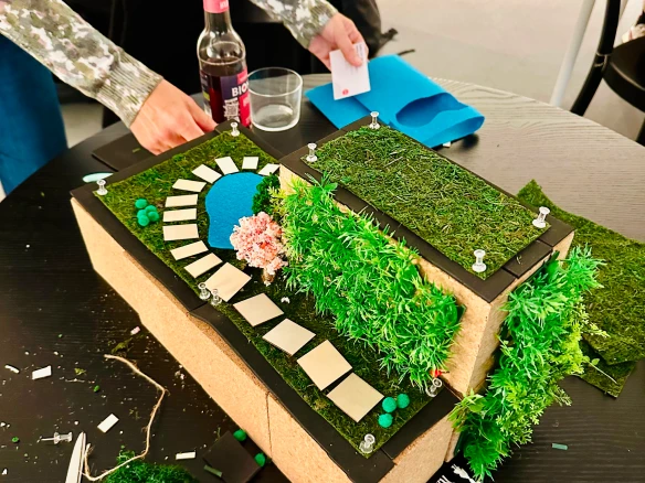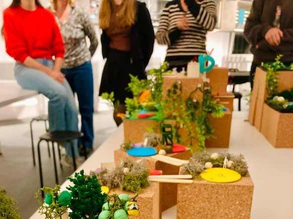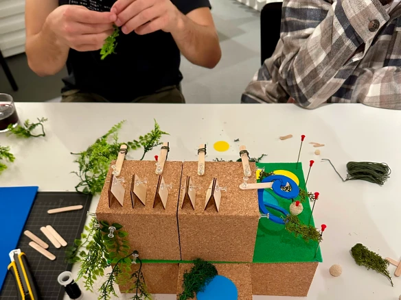 Ein besonderer Höhepunkt war der kreative Workshop des Vereins obenstadt e.V. am 16. Oktober 2025. Unter dem Titel „Urbane Dachlandschaften“ erforschten die Teilnehmenden, wie Dächer in Zukunft sinnvoll, gemeinschaftlich und inspirierend genutzt werden können. Nach einem kurzen Impuls mit internationalen Beispielen ging es direkt ins kreative Arbeiten: Aus unterschiedlichsten Materialien entstanden farbenfrohe Modelle, die visionäre Ideen zwischen Stadt, Natur und Gemeinschaft sichtbar machten.