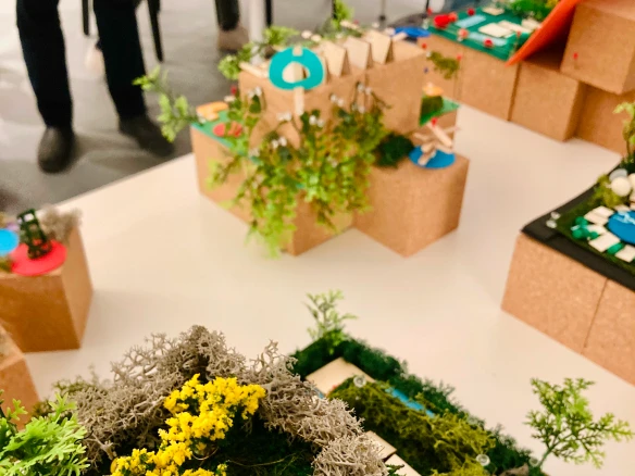 Die im Workshop entwickelten Entwürfe wurden anschließend in der Ausstellung präsentiert und zeigten eindrucksvoll, wie vielfältig und lebendig die Dächer von morgen sein können – als Orte des Austauschs, der Begrünung und urbaner Lebensqualität.